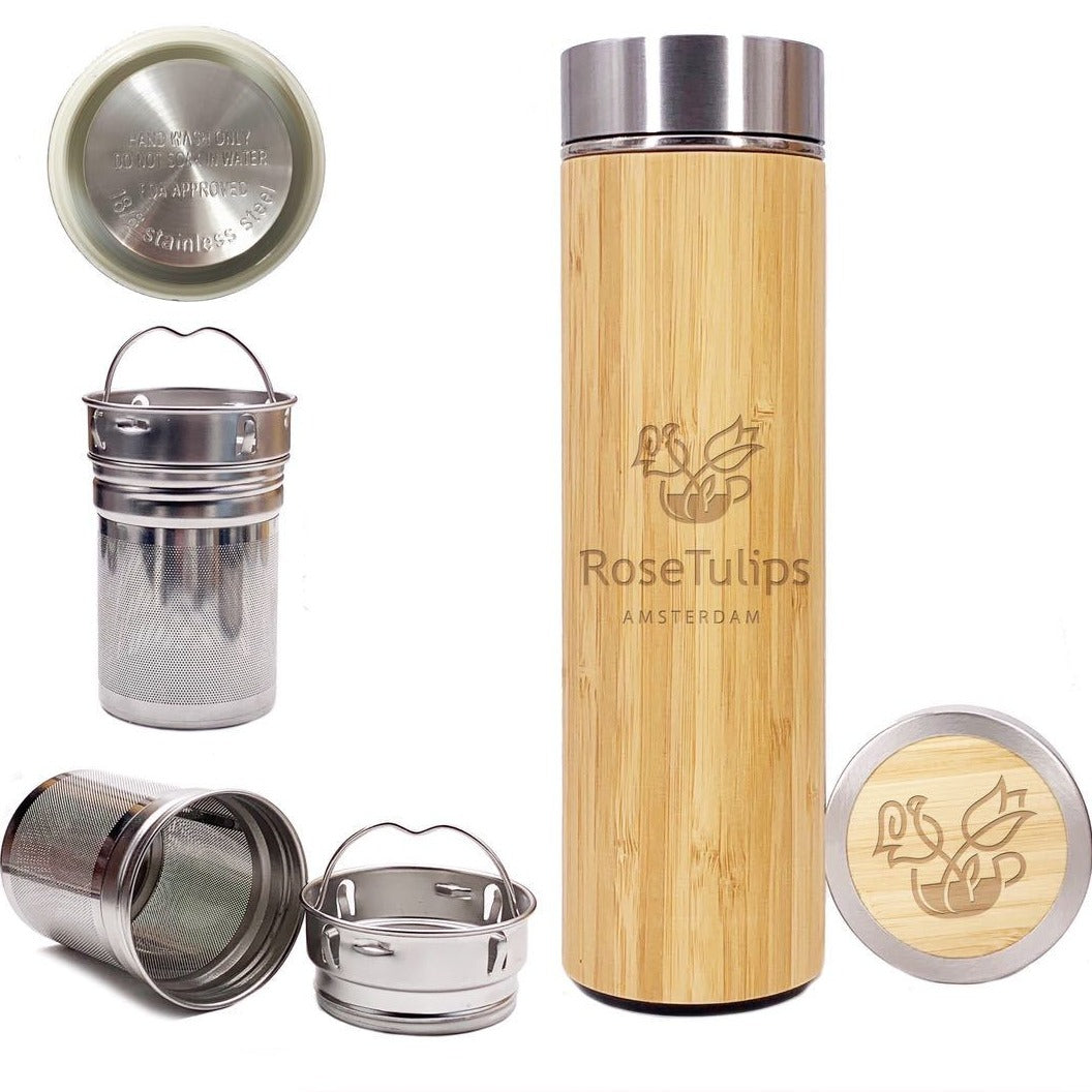 Made from eco-friendly bamboo and high-quality stainless steel, this flask is as stylish as it is functional. The double-walled insulation maintains the ideal temperature, while the built-in tea strainer lets you steep your favourite loose-leaf blends effortlessly. Lightweight yet durable, it's the perfect companion for tea lovers who value sustainability, convenience, and great taste.